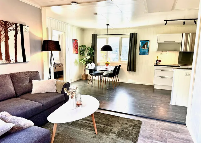 ישנו גם כן מטבח בנכס, המצויד עם מקרר, תנור וכיריים. הדירה זה כ-10 דקות נסיעה משדה תעופה טרומסו, לנגנס.